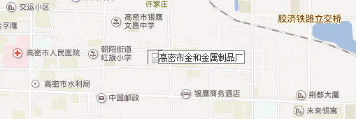 高密市金和金屬制品廠位于山東省高密市,東臨青島,西依濰坊,膠濟鐵路、濟青高速公路橫穿高密,地理條件優(yōu)越,交通便利。